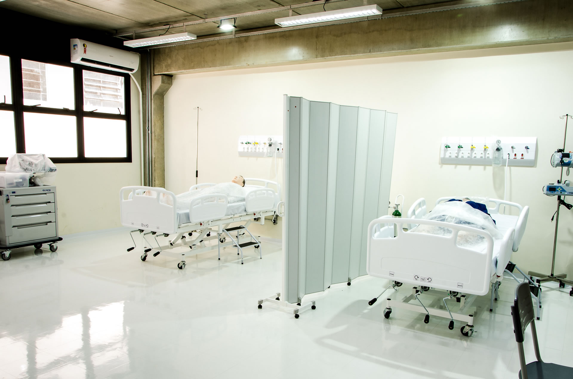 O Laboratório de Simulação Realística e de práticas médicas é voltado para a aplicação de metodologias ativas de ensino nos cursos da área de saúde, onde são propostas atividades que envolvam situações específicas de atendimento de saúde. Dada a situação, os estudantes devem realizar procedimentos em um ambiente provido de equipamentos que simulam o atendimento real.