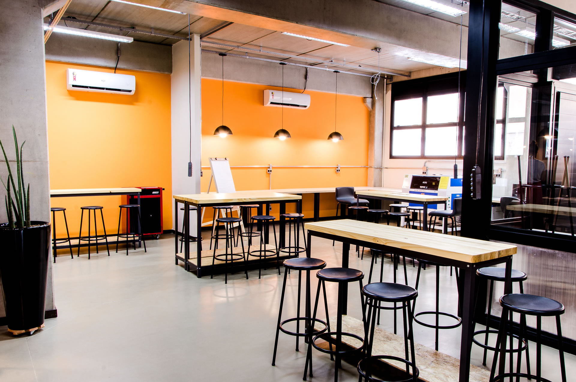 Uma vez por semana, há o Open Day, quando o laboratório está aberto a qualquer pessoa, oferecendo suporte tangível para todos, em uma rica oportunidade de uso da nossa estrutura e de troca com outros estudantes ou profissionais. Além disso, o espaço conta com uma área de de coworking, laboratório de Startups, pré-incubação de empresas, desenvolvimento de Spin-offs, programa de mentoria - tudo em ambiente moderno e inspirador.